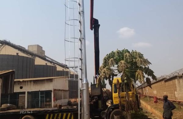 Erection of 200w Security Ligting at Olams Grains Asadam
